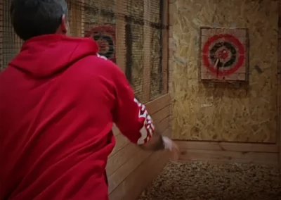 Une fois les consignes intégrées, place au lancer sur cibles en bois ! Vous testez différentes haches (et d’autres objets de lancer proposés par le centre) pour voir celles qui vous correspondent le mieux, augmenter vos points et affiner votre technique. On y va à son rythme, que vous soyez débutant ou déjà en mode « confirmé ».