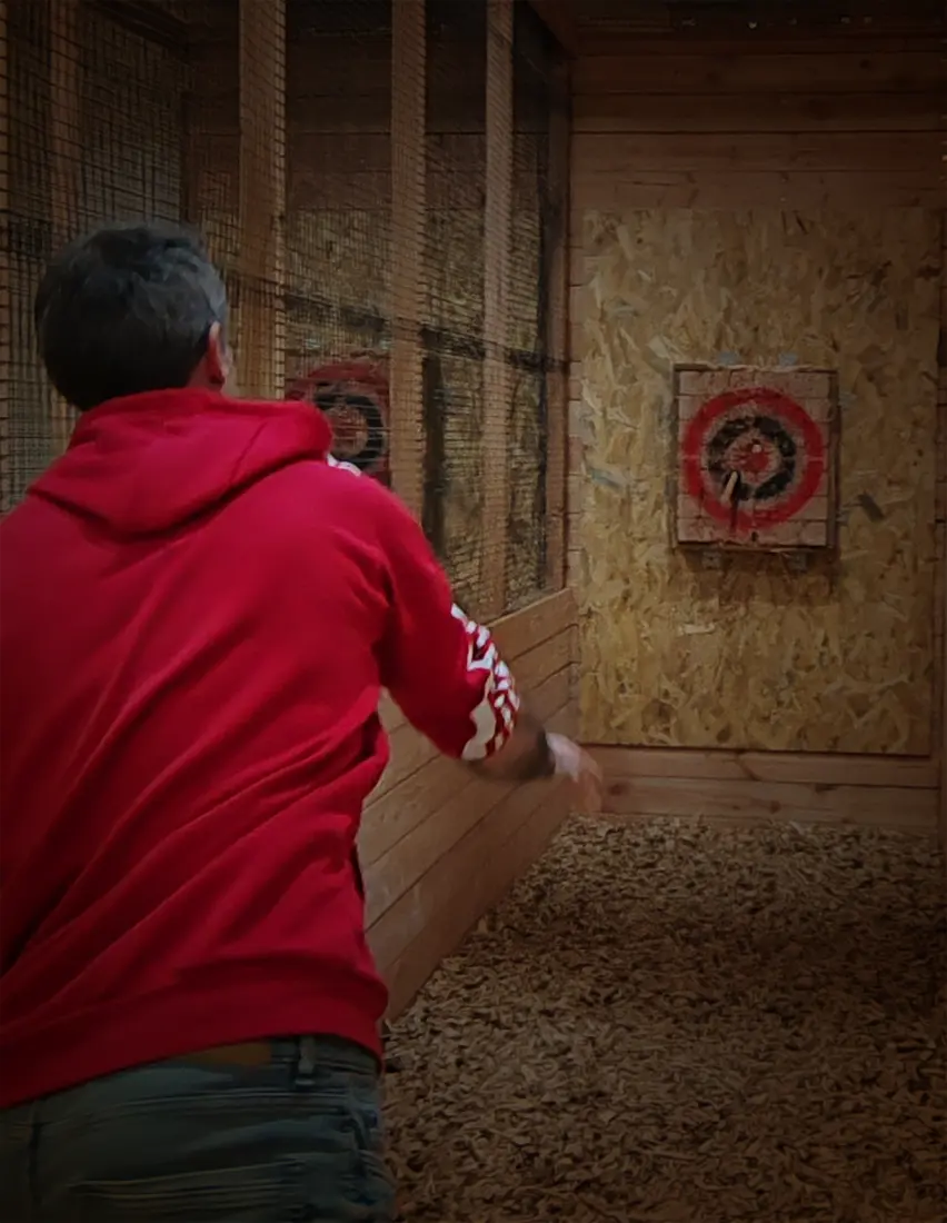 pour jouer au lancer de haches. Les participants ayant moins de 18 ans doivent être accompagnés d’un parent ou un représentant légal.