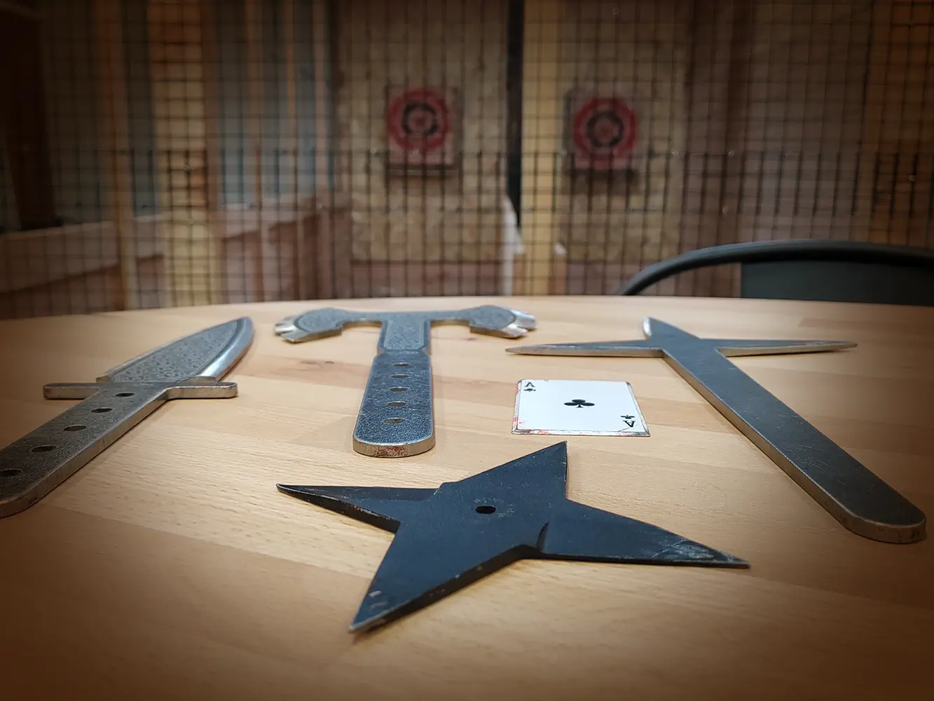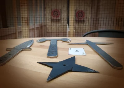 Vous lancerez différents types d’objets contondants et pas que des haches. Pour chaque objet, nous vous expliquerons comment l’utiliser. Ensuite vous choisirez vos armes de lancer.